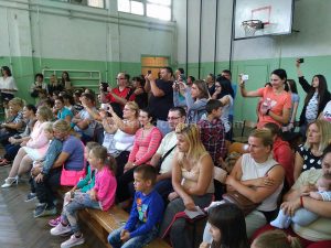 U sali škole sve je odzvanjalo od dječije vriske i pjesme kao i od gromoglasnih aplauza koje su dobijali.