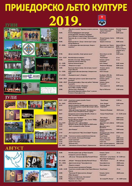 Kompletan program Prijedorskog ljeta kulture 2019. nudi 42 programa iz pozorišne, likovne, književne, horske, filmske, muzičke, lutkarske, etnološke i folklorne oblasti, a odvijaće se na preko 30 različitih lokacija na području Grada.