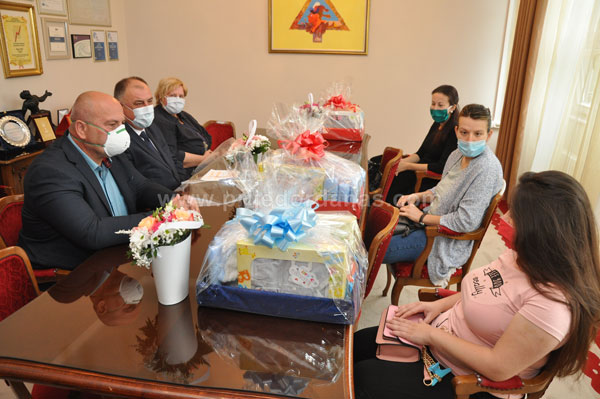 -Virus korona se ne predaje i iako nismo mogli održati okupljanje beba i roditelja na našem gradskom trgu, mi smo ispunili sve što je bilo planirano, da se darivaju i roditelji i bebe što je bilo praksa tokom Konferencije beba. Mi smo prvo darivali bebe rođene na Dan grada i slavu grada kada su bile tri bebe, zatim smo obišli i darivali bebe -trojke koje su simbolično bebe sa najviše braće i sestara.To je porodica Stojnić u Gornjem Petrovom Gaju u kojoj su rođene trojke Strahinja, Sergej i Aleksej i imali smo danas prijem i beba koje su rođene na Vidovdan, to su dvije najmlađe bebe, ali smo darivali danas i najstariju bebu koja je rođena prvi dan nakon Vidovdana 2019. godine-rekao je Đaković.