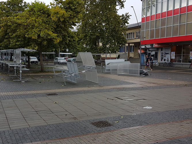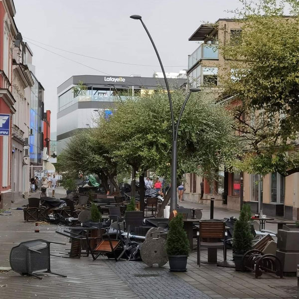 Da se niko nije nadao ovako snažnom vjetru, dokaz su porušeni stolovi, stolice i suncobrani ugostiteljskih objekata u glavnoj Gradskoj ulici u Prijedoru.