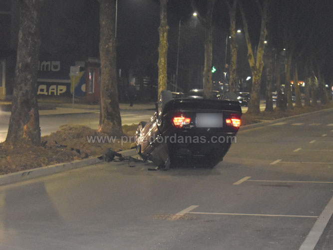 Kako saznajemo, automobil je udario u ivičnjak pa u drvo nakon čega se prevrnuo na krov.