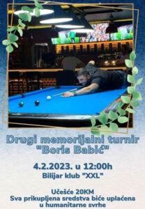 Drugi memorijalni humanitarni turnir ”Boris Babić” biće održan sutra u bilijar klubu ”XXL” koji se nalazi preko puta Muzičke škole “Savo Balaban” u Prijedoru.