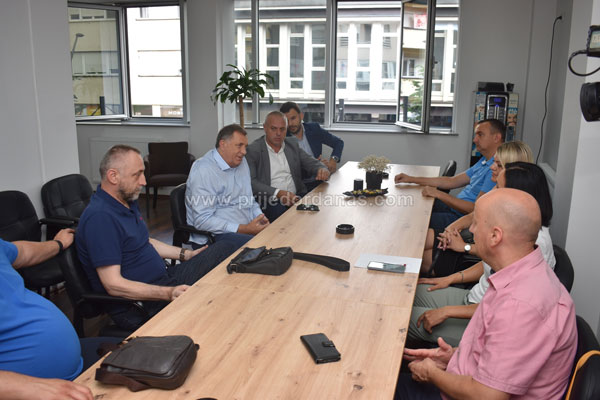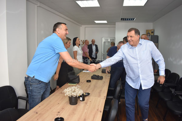 Dodik u Prijedoru, razgovarano o brojnim temama – FOTO admin July 22, 2023 Dodik u Prijedoru, razgovarano o brojnim temama – FOTO2023-07-22T12:17:25+02:00 Društvo Likes 0Rating 12345Predsjednik Republike Srpske i lider Saveza nezavisnih socijaldemokrata Milorad Dodik danas je u radnoj posjeti Priejdoru. On se u novim prostorijama stranke sastao sa rukovodstvom Gradskog odbora SNSD Prijedor i gradonačenikom Javorom. Razgovarano je o brojnim temama kao što su predstojeće obilježavanje Dana sjećanja na stradale i prognane u “Oluji” koje će biti održano u našem gradu 4. avgusta uz prisustvo najviših zvaničnika RS i Srbije, o rudnicima u Bistrici i Bukovoj Kosi te aktuelnim pitanjima koja se tiču Prijedora i Republike Srpske. Tekst i foto – www.prijedordanas.com