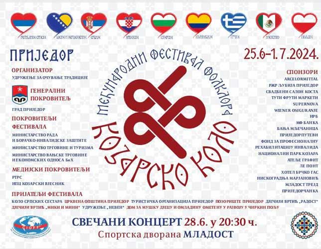 Prijedor će od utorka, 25. juna, do ponedjelјka, 1. jula, biti domaćin jubilarnog 5. Međunarodnog festivala folklora “Kozarsko kolo” na kojem će učestvovati ansambli iz Meksika, Kolumbije, Grčke, Bugarske, Polјske, Hrvatske, Srbije i BiH.