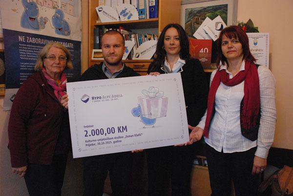 Sekretar KUD-a Alma Semanić rekla je da je ovo drugi put za 13 godina, od kada je obnovljen rad društva, da Hipo Alpe Adria banka pomaže rad ovog udruženja, podsjećajući da je prije pet godina darovala klavijature za potrebe hora koje se i danas koriste.