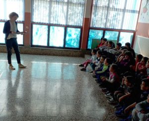 Oni su na zajedničkom času održanom u holu škole pažljivo slušali bibliotekarku Marijanu Novaković iz gradske biblioteke, koja im je čitala odabrane bajke.