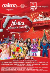 Draga djeco, pozivamo vas, da nam se pridružite na maskenbalu u Slatkoj zimskoj čaroliji 30.12.2017. godine u 13h.