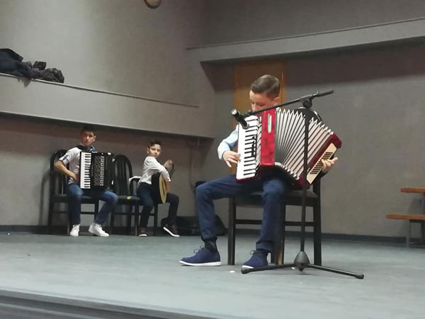 Mihajlo Gavranović (harmonika), Benjamin Stanojević (gitara) i Stefan Lazić (harmonika), učenici Muzičke škole „Savo Balaban“ – Područno odjeljenje Omarska, izveli su kompozicije s kojima su pobjedili na školskom takmičenju.
