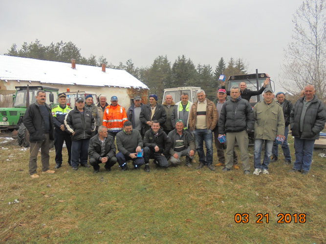 U obraćanju prisutnima Mirko Brkić, sekretar AMD i Gavranović Goran, ovlašteno lice ispred Policijske stanice za bezbjednost saobraćaja Prijedor, ukazali su na značaj i zakonsku obavezu posjedovanja i korištenja žutog rotacionog svjetla, obavezu registracije traktora, posjedovanja vozačke dozvole, bezbjedan prevoz lica i tereta i pridržavanja pravila saobraćaja kada se kreću po javnim putevima.