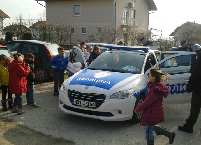 Sa učenicima su policijski službenici upriličili druženje i razgovor na temu bezbjednosti djece u saobraćaju, a predočen je i dio opreme koju policijski službenici koriste svakodnevno u obavljanju policijskih poslova.