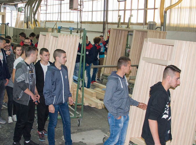 Učenici su obišli pogone za proizvodnju drvenih i PVC prozora i vrata, kao i renovirani prodajni salon u kojem su mogli da vide gotove proizvode i da popričaju sa menadžerima prodaje.