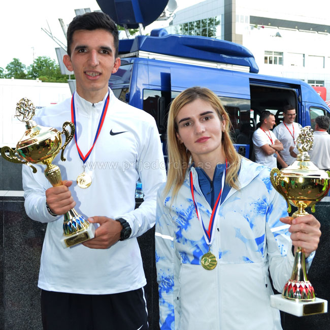 AMELA TERZIĆ I ELZAN BIBIĆ POBJEDNICI 25. MEĐUNARODNE ULIČNE TRKE “PRIJEDOR 2018” – FOTO/VIDEO admin May 15, 2018 AMELA TERZIĆ I ELZAN BIBIĆ POBJEDNICI 25. MEĐUNARODNE ULIČNE TRKE “PRIJEDOR 2018” – FOTO/VIDEO2018-05-15T21:30:51+02:00 Foto dana, Sport Likes Rating 12345Amela Terzić i Elzan Bibić, članovi Atletskog kluba Novi Pazar i reprezentativci Srbije, pobjednici su jubilarne 25. Međunarodne ulične trke „Prijedor 2018“. Terzićeva je svoju šestu pobjedu ostvarila ispred Mađarice Zite Kačer i Teodore Simović iz Srbije. Bibić je do drugog trijumfa u Prijedoru stigao ispred dvojice Kenijaca, prošlogodišnjeg pobjednika Hilari Kiptum Maja Kimaja i trećeplasiranog Nelsona Čerotića. U 26 trka učestvovalo je oko 1.000 učesnika. Organizator Međunarodne ulične trke “Prijedor 2018” je Atletski klub “Prijedor”, generalni pokrovitelj grad Prijedor, a pokrovitelj Ministarstvo za porodicu, omladinu i sport Republike Srpske. Današnja trka održana je pod motom „Volim Prijedor“, a njen promoter bio je Slobodan Popović, aktuelni selektor Atletskog saveza Srbije i nekadašnji prvak Jugoslavije i Balkana. Tekst I foto – Aleksandar Drakulić – www.prijedordanas.com http://parh.rtrs.tv/arhiva/2018/05/15/15_05_2018_prenos_x9cpr_live.mp4 međunarodna ulična trka, Prijedor 2018