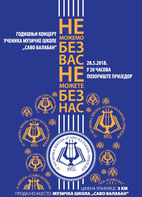 Godišnji koncert učenika Muzičke škole “Savo Balaban” iz Prijedora održaće se večeras, 28.maja sa početkom od 20:00 časova u Pozorištu Prijedor.