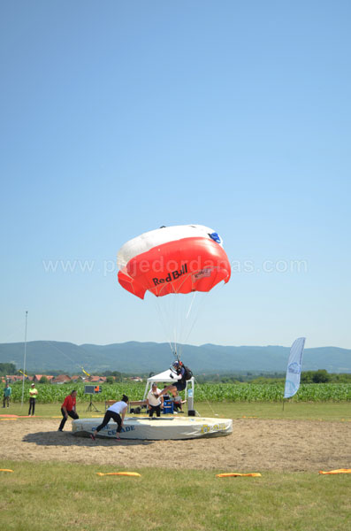 S obzirom da helikopter nije stigao jutros zbog loših vremenskih uslova, do otvaranja su skokovi izvođeni iz malog aviona koji može “ponijeti” samo četiri padobranca pa još nije okončana prva serija.