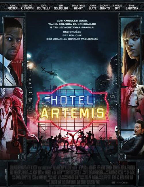 Usred ovog haosa, četvorica muškaraca s maskama lobanje nalaze se usred neuspjele pljačke banke. Sherman Atkins vodi svog brata i njihova dva pomagača iz banke u vatrenu borbu s policajcima. Povrijeđene i bez druge mogućnosti, Sherman ih vodi do njihove jedine nade za spas … HOTELA ARTEMIS. Svojevrsnoj ilegalnoj bolnici za kriminalce u kojoj vrijede posebna pravila.