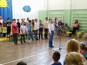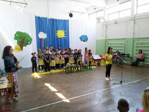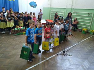 U sali škole sve je odzvanjalo od dječije vriske i pjesme kao i od gromoglasnih aplauza koje su dobijali.