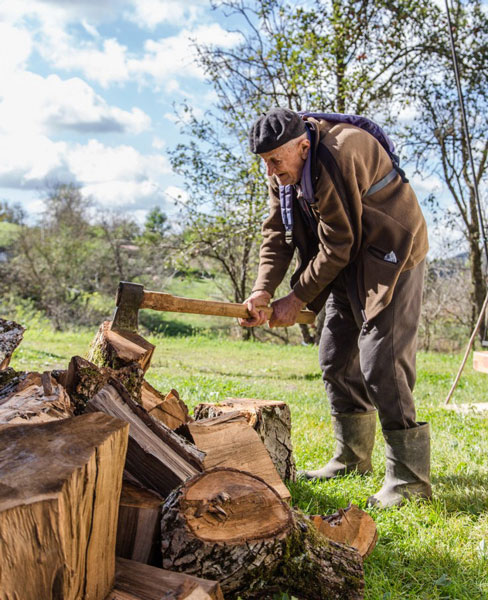 Oko sat i po odvoji na brigu o bikovima, sat ostane za cijepanje, a onda, uz pomoć štapova, ode do bašte da nešto ubere za ručak.
