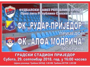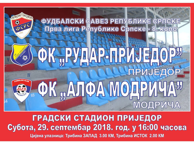 Fudbaleri Rudar-Prijedora sa optimizmom dočekuju ekipu Alfa Modriče u okviru 8.kola prvenstva Prve lige Republike Srpske.