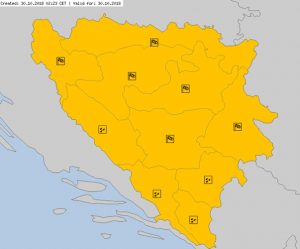 Hidrometeorološki zavodi izdali su narandžasti meteoalarm za područje Prijedora za ovaj utorak, 30.oktobra.