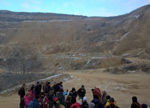 Činilo se da je sad lakše jer se ide niz brdo ali ipak nije bilo. Trebalo je kočiti i paziti na svoje korake. Lagano smo se spustili do sela Lamovita gdje nas je čekao autobus koji nas je odvezao do rudnika Omarska. Prošavši kroz krug rudnika došli smo do vidikovca iznad površinskog kopa “Buvač” koji je, kako kaže naš domaćin na tom mjestu dipl. inž. rudarstva Dario Duvnjak, trenutno jedan od najvećih površinskih kopova u BiH dimenzija 1800x1400m. Dario nam je pojasnio šta se dešavalo u tom trenutku u toj velikoj “rupi” koja je vrvila od dempera, bagera raznih sorti i ostalih mašina. Bilo je interesantno za vidjeti kako demper dovlači rudu do velike drobilice od koje ruda dalje ide beskonačnom trakom na dalji proces obrade.