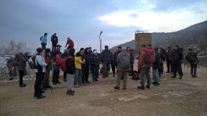 Grupa od četrdeset i tri planinara je stigla u krug kamenoloma “Drenovača” na Kozari koji je bio startna pozicija za početak marša sa nadmorske visine od 510m. Prisutne je pozdravio predsjednik PSD “Ljubijski rudar” Božo Grbić koji je poželio dobrodošlicu svima i rekao nekoliko riječi o tradiciji rudarenja na našim prostorima i o samoj rudarskoj transverzali kojom se svake godine obilaze mjesta vezana za rudarenje. Potom nam se obratio domaćin sa Drenovače, glavni poslovođa Milan Đaković – Bobi koji tu radi od otvaranja kamenoloma 1985. godine. Mića je objasnio kako je lijepo raditi na ovom radnom mjestu jer je to mjesto sa najboljim pogledom – vidi se cijelo prijedorsko polje, planine Grmeč, Klekovača, Osječenica, Manjača, Čemernica… Takođe smo saznali da Drenovača 90% svojih proizvoda radi za potrebe rudnika Omarska a 10% za treća lica.
