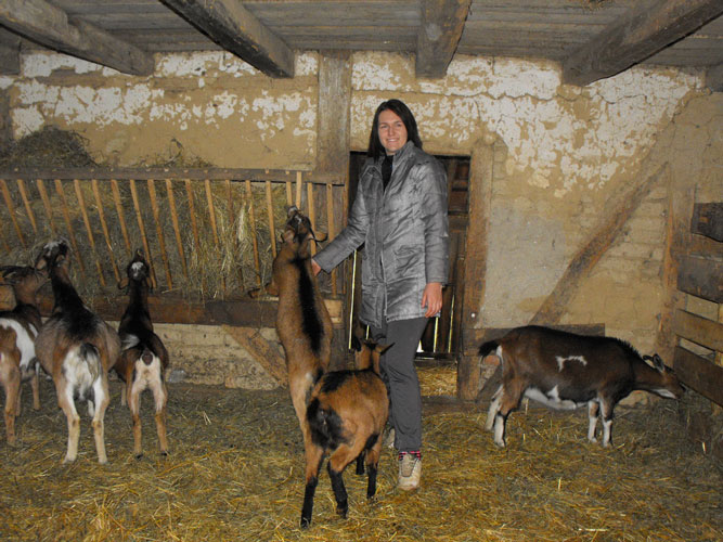 Kupila je jednu kozu, a sada ima stado od 18 alpskih koza. Proizvodi sir i surutku, a prodaje i kozije mlijeko.