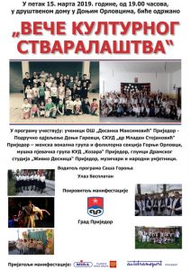Zimski kulturni karavan “VEČE KULTURNOG STVARALAŠTVA“, u petak 15. marta, stiže u Donje Orlovce, gdje će biti održana posljednja ovosezonska manifestacija.