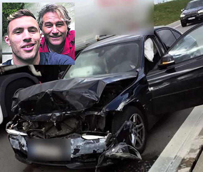 Kako se može vidjeti na istim, njihov automobil je oštećen, ali pjevačev sin i njegov prijatelj su srećom prošli sa lakšim povredama.