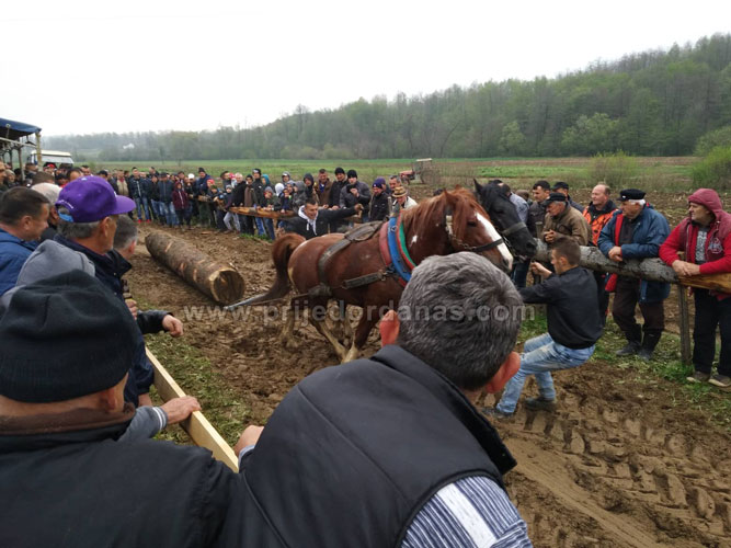 Preko 30 grla konja takmičilo se u prevlačenju klade kroz arenu dugu 90 metara.
