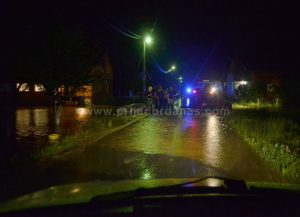 Pored poplava u naselju Urije, nabujala rijeka Vragolovača izlila se u mjestu Јutrogošta i presjekla lokalni put.