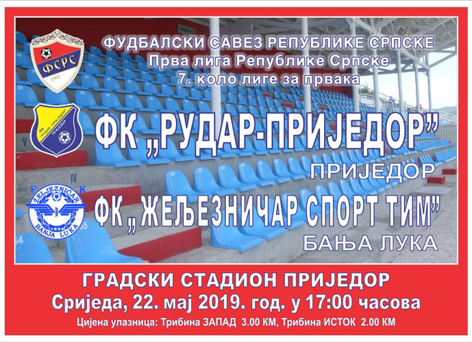 U okviru 7.kola Lige za prvaka Republike Srpske, fudbaleri Rudar-Prijedora na Gradskom stadionu dočekuju Željezničar Sport Tim iz Banjaluke.