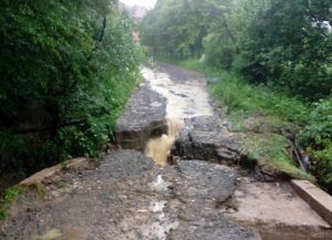 U mjestu Jutrogosta rijeka Vragolovaca poplavila je puteve, te je odnijela most na putu prema Donjem Jelovcu.