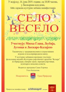 Prva ovogodišnja Kulturno-zabavna manifestacija „Selo veselo“ biće održana u Ljeskarama kod doma, u nedjelju 16.juna sa početkom u 18 časova.