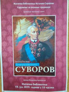 U srijedu 19. juna 2019. godine Udruženje za očuvanje tradicije Prijedor održalo je promociju prevoda romana Leontija Rakovskog “Generalisimus Suvorov” u Istočnom Sarajevu.