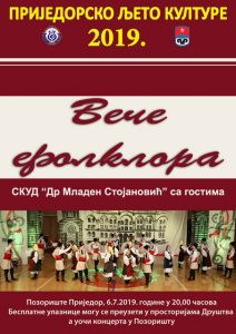 U okviru Prijedorskog ljeta kulture 2019, danas će biti održano “Veče folklora” koje organizuje SKUD “Dr Mladen Stojanović” Prijedor.
