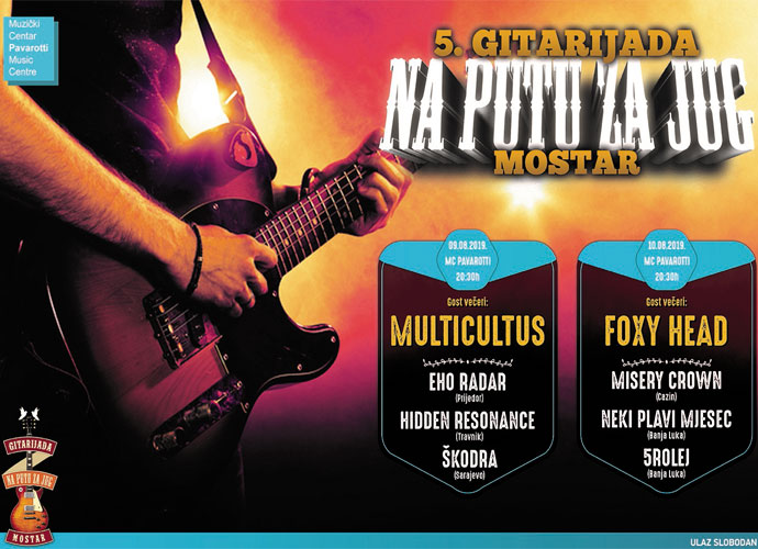 U petak, 9.8., sviraju tri benda, Eho Radar (Prijedor), Hidden Resonance (Travnik) i Škodra (Sarajevo), a nakon njih će kao gosti nastupiti pobjednici prošlogodišnje gitarijade, grupa Multicultus iz Banja Luke.