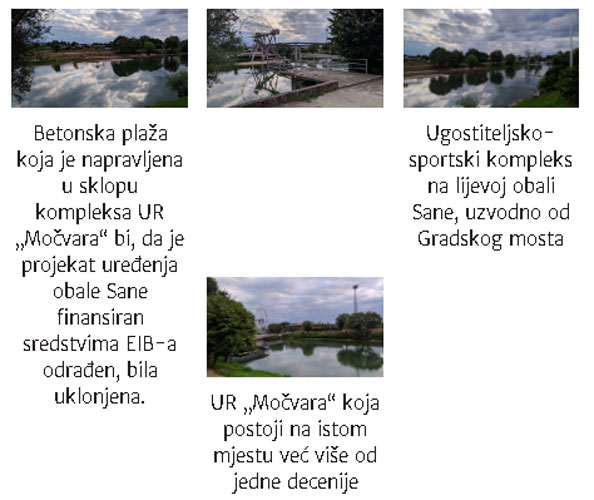 Projektima EIB je difinisano uređenje obale Sane 2 km uzvodno od Gradskog mosta, što je područje na kom se nalazi k.č. 3294 odnosno objekat UR „Močvara“