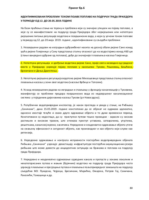 „Nepotpuna regulacija i uređenje vodotoka rijeke Sane, prije svega nizvodno od gradskog mosta u Prijedoru uzrokuje pojavu poplave u naseljima: Tukovi, Raškovac, Bišćani, Brezičani i Donja Dragotinja.“