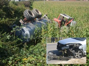 Naime, oko 13:30 časova na magistralnom putu Prijedor-Sanski Most u mjestu Ništavci došlo je do nezgode u kojoj su učestvovali putnički automobil “VW Tuareg” i traktor “Steyr” sa cisternom.