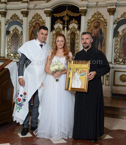 Vjenčanje Gorane i Borislava Vasiljevića u crkvi u Oštroj Luci ostaće zauvijek u pamćenju, kako mladencima, njihovim porodicama i svatovima tako i svešteniku crkve Karađorđu, kojem je mlada nakon svetog čina darovala ikonu Bijelog anđela, svoj autorski rad.