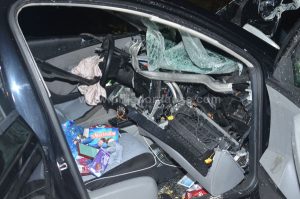 Od siline udara, zaštitna ograda se zabila u automobil po sredini i zamalo “promašila” vozača.