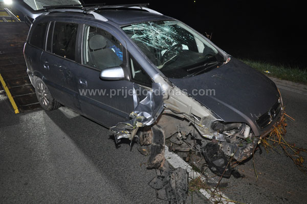 Na automobilu je pričinjena značajna materijalna šteta a oštećena je i ograda na obližnjem mostiću-propustu koji je “Opel” udario prilikom slijetanja.
