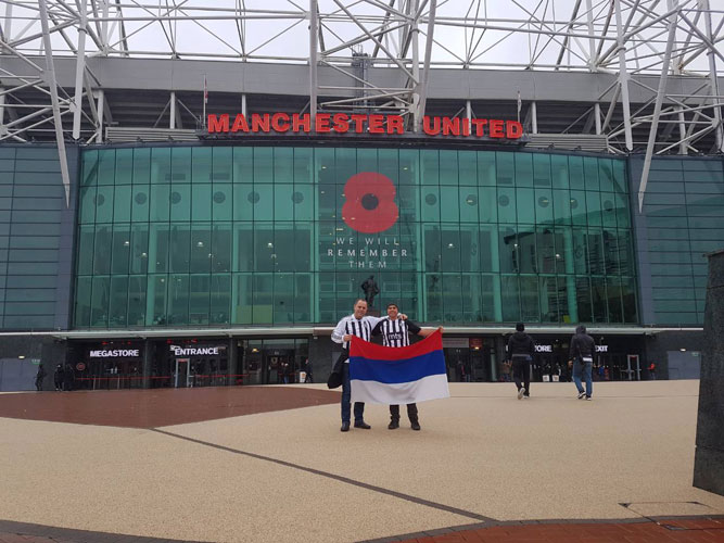 -Naši članovi Dalibor Pavić, Jovan Lukić i Miodrag Lukić biće večeras na legendarnom “Old Trafordu”. Oni će na “Teatru snova” navijati za crno-bijele i nadam se da će njihov odlazak na ovu utakmicu donijeti sreću “Partizanu” da se vrati neporažen – kaže Janjetović.
