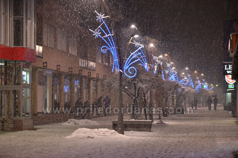 SNJEŽNO NEDJELJNO VEČE U PRIJEDORU – FOTO admin January 11, 2015 SNJEŽNO NEDJELJNO VEČE U PRIJEDORU – FOTO2015-01-11T22:34:42+01:00 Društvo Likes Rating 12345Tokom ove nedjeljne večeri snijeg je nekoliko sati „zasipao“ Prijedor, a u ovim trenucima prestao je da pada. Prošli smo gradskim ulicama kako bi Vam donijeli djelić ugođaja kakav je večeras vladao u našem gradu. Iako je padao gust snijeg u dvorani su se igrali mečevi turnira u malom fudbalu a posjeta je bila sasvim zadovoljavajuća s obzirom na vremenske uslove. Bilo je i prolaznika u šetališnoj zoni glavne ulice a neki su snijeg iskoristili kako bi napravili fotografije za uspomenu. Ono što je činjenica je da većina najprometnijih ulica u gradu nije adekvatno očišćena, izgleda da nas je snijeg u januaru ponovo iznenadio. Tekst i foto – Aleksandar Drakulić – www.prijedordanas.com