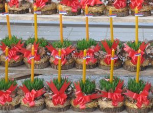 Najjeftinija je sama pšenica, grančica badnjaka i rukohvat slame, a aranžmani u korpama od drveta sa orasima i većom granom badnjaka imaju višu cijenu.