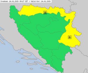 Hidrometeorološki zavodi izdali su žuti meteoalarm za područje Prijedora za ovaj utorak, 14. januar 2020. godine.