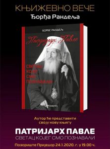 Povodom obilježavanja Savindana Grad Prijedor i Pozorište Prijedor organizuju promociju knjige Đorđa Randelja “PATRIJARH PAVLE – SVETAC KOJEG SMO POZNAVALI”, koja će biti održana u petak 24. januara sa početom u 19 časova u Pozorištu Prijedor