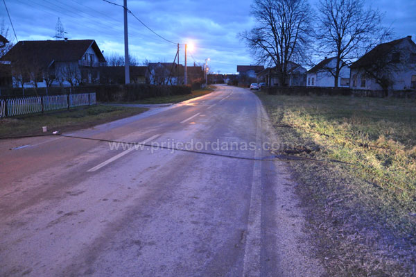 Naime, oko 16:00 časova, vjerovatno zbog dotrajalosti, srušila se drvena strujna bandera ispred jedne porodične kuće a žice su visile iznad ceste.