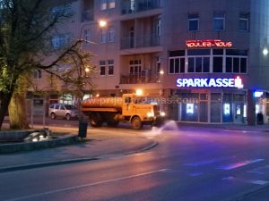 Šef tima za dezinfekciju grada Zlatko Ritan potvrdio je novinarima da je večeras nastavljena dezinfekcija gradskih ulica i javnih površina u borbi protiv širenja korona virusa.