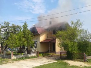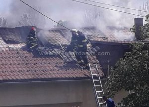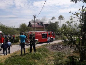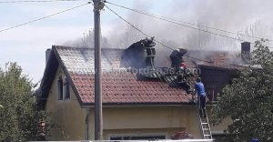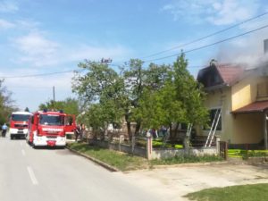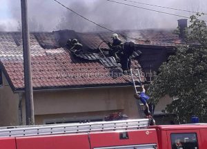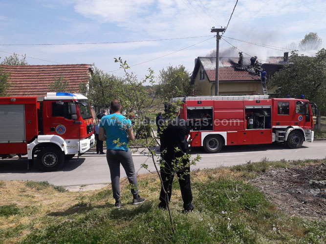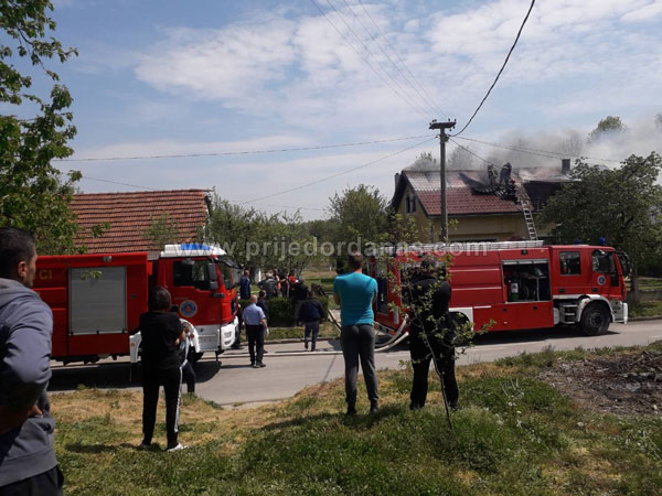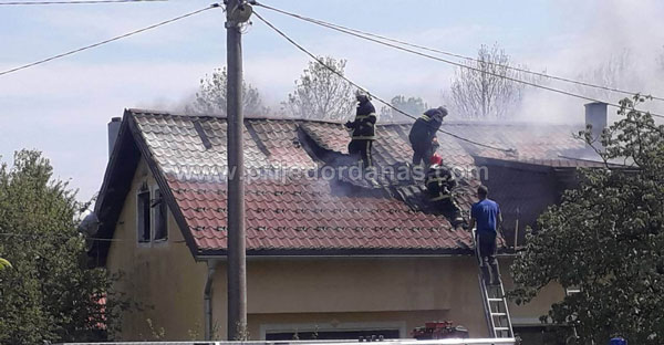U požaru koji je izbio danas u 11.20 časova u prijedorskom naselju Saničani, izgorio je krov kuće u vlasništvu mještanke N.Ž..